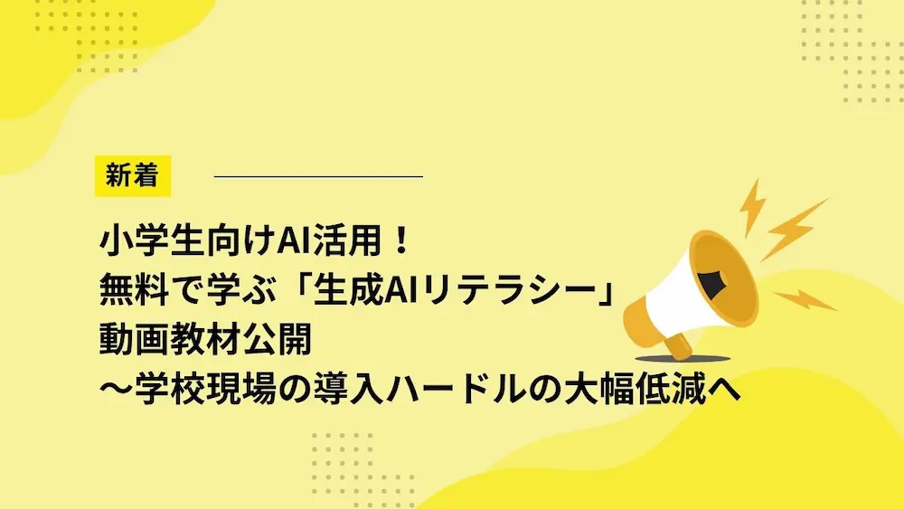 NEW小学生向けAI活用!無料で学ぶ「生成AIリテラシー」動画教材公開~学校現場の導入ハードルの大幅低減へ