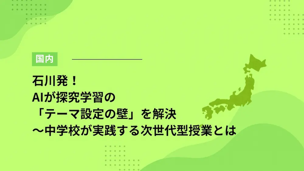 新学習指導要領で重視される探究学習において、生徒の「テーマ設定の困難」と教員の「個別指導負担」という二つの課題を解決する。