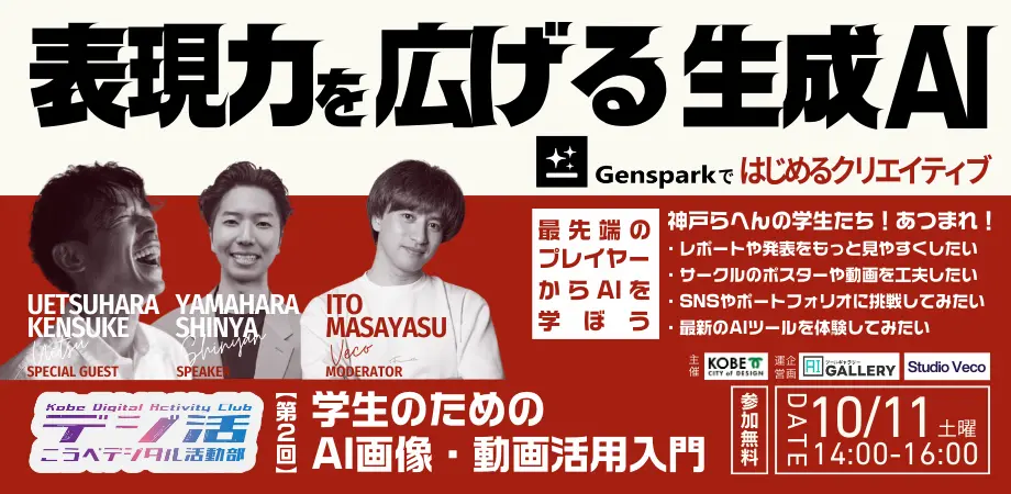 【10/11セミナー】話題のAIツールで画像・動画生成!学生のための表現力アップ講座in神戸