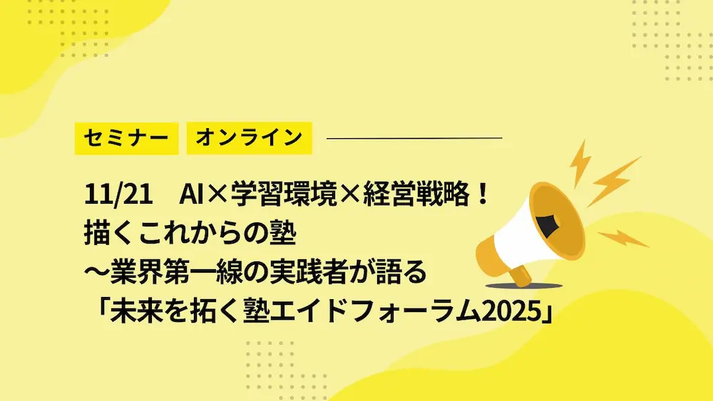 【11/21】AI×学習環境×経営戦略!描くこれからの塾~業界第一線の実践者が語る「未来を拓く塾エイドフォーラム2025」