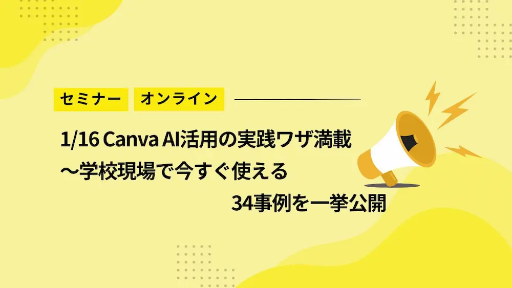 このセミナーでは、全国の教育現場で実践されている具体的な活用事例を通じて、Canvaを明日からすぐに使いこなせる方法をお伝えします。