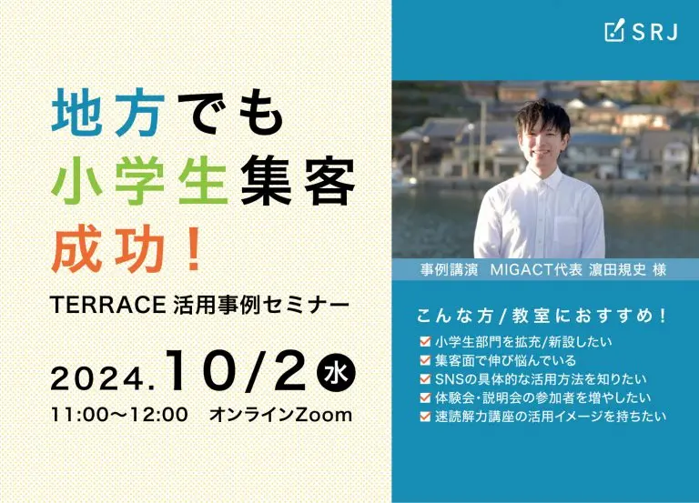 この度、 『地方でも小学生集客成功!TERRACE活用事例セミナー』を開催する運びとなりました。