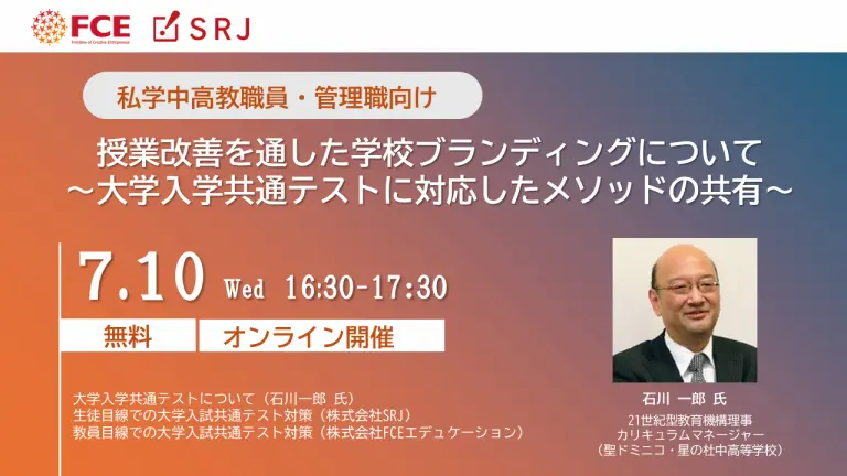 この度、株式会社FCEエデュケーションと株式会社SRJにて学校運営に関わる先生方を対象としたオンラインセミナーを開催します。