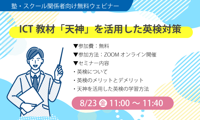 そこで、今回のセミナーでは、英検の内容や学習方法についてのお話と天神がどういった形で活用できるのかをご案内させていただきます。