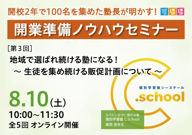 【開校からわずか2年で生徒数100名を達成した東京都C.school風間先生、塾開業ポイントを大公開!】