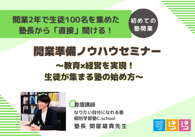 開業2年で生徒100名を集めた塾長から「直接」聞ける! 開業準備ノウハウセミナー ~教育×経営を実現!生徒が集まる塾の始め方~