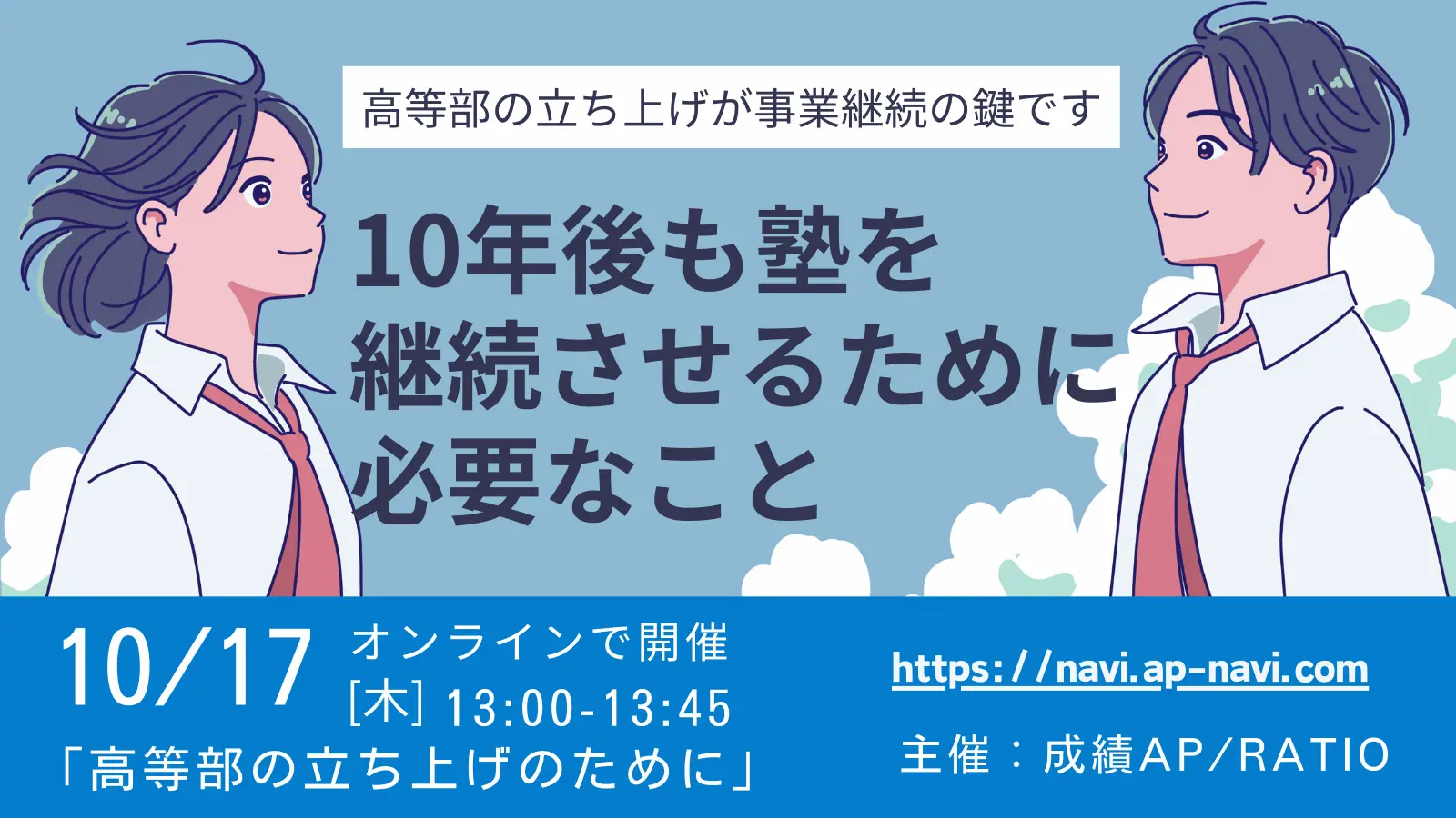 生き残りへの最適解! 成功する学習塾高等部の作り方、教えます。