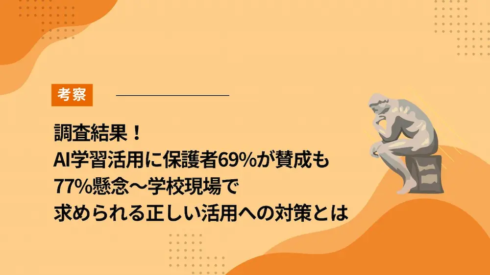 • AI学習活用に保護者69%が賛成も77%懸念~学校現場で求められる正しい活用への対策とは